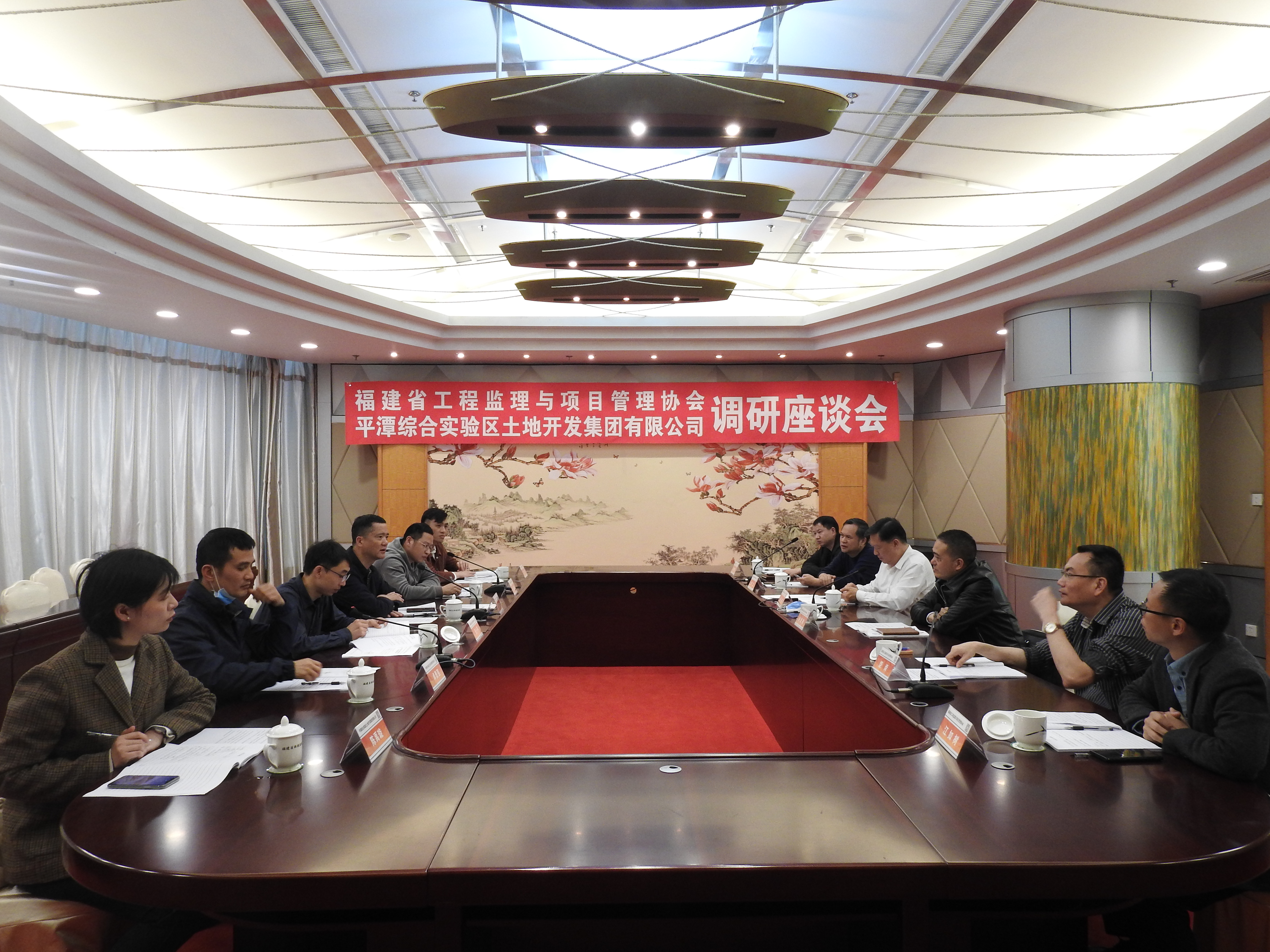 4月7日下午,平潭综合实验区土地开发集团有限公司党委委员、副总经理林东明一行6人到世预赛官网入口调研交流。世预赛官网入口会长林俊敏、常务副会长饶舜、副会长兼自律委员会主任郑奋、副会长兼秘书长江如树、监事长刘立、福建省人防协会会长林剑煌参加座谈会。